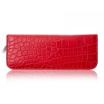 Červené kožené pouzdro ADK na 3 pera v krokodýlím designu. Zapínání na zip.