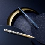 Speciální edice ikonického pera 849 od švýcarské značky Caran dAche znázorňuje hvězdný vesmír. Kolekce Cosmic Blue dodává svátečním dnům kouzlo vesmíru a inspiruje ke snění. Model 849 Cosmic Blue Gold má šestihranné hliníkové tělo s metalickými zlatými odstíny zachycujícími kouzlo padajících hvězd. Matné chromové tlačítko a pružný klip. Stiskací mechanismus pro vysunutí náplně Goliath - součástí balení jedna černá náplň. Dodáváno v krásné elegantní krabičce s motivem noční oblohy.
