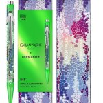 Ikonické pero Caran dAche 849 v limitované edici Germanier je poctou švýcarskému designu i módnímu experimentu. Neonově zelené tělo z lehkého a odolného hliníku nese čtyřbarevný perlový motiv inspirovaný tvorbou designéra Kevina Germaniera. V precizně tvarovaném šestihranném těle se spojuje nadčasová elegance s udržitelnou kreativitou. Pero je vybaveno černou náplní Caran dAche Goliath s výdrží až 600 A4 stran. Klip a tlačítko z niklované oceli doplňují kontrastní vzhled, zatímco stylové kovové pouzdro s holografickým potiskem podtrhuje sběratelský charakter edice.