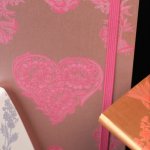 Luxusní italský zápisník ve velikost 13 x 21 cm má růžový saténový obal s krajkovým romantickým motivem. celý popis