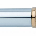Kuličkové pero Cross řady Bailey v elegantním moderním designu. Pero má leštěný chromový povrch. Doplňky jsou pokovené 23karátovým zlatem. Středový kroužek s hlubokými rytinami zvýrazňuje vzhled pera. Otočný mechanismus pro vysunutí náplně. Součástí balení je černá a modrá náplň. Dodáváno v dárkové krabičce.