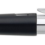 Kovový teleskopický roller bez víčka v černé barvě a leskle chromovanými doplňky. Patentovaný teleskopický mechanismus vysouvání náplně s gelovým inkoustem. Pevný pružinový klip. Dodáváno v elegantní dárkové krabičce.