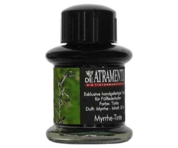 Exklusivní ručně vyráběný inkoust De Atramentis v nebesky modré barvě s vůní myrhy. celý popis