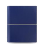 Modrý diář s kontrastním šitím na okraji je charakteristický fixační gumičkou uprostřed diáře. Módní barvy a příjemný materiál koženého vzhledu, vnitřní materiál umělý semiš. Velikost náplně A5 - formát papíru 148 x 210 mm. Diář je standardně naplněn českým a slovenským kalendářem.