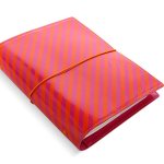 Atraktivní pruhované provedení diáře, kombinující lesklou růžovou a matnou oranžovou barvu. Je charakteristický fixační gumičkou uprostřed diáře. Velikost náplně A5 - formát papíru 148 x 210 mm. Diář je standardně naplněn českým a slovenským kalendářem.