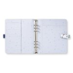 Diář Filofax z kolekce Garden vyniká svým květinovým vzorem a kontrastní vzorovanou vnitřní stranou desek. Desky jsou vyrobeny z hladkého syntetického materiálu koženého vzhledu s detaily ze zlaté fólie. Velikost náplně A5 - formát papíru 148 x 210 mm.