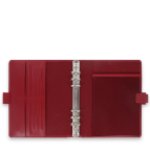 Levá vnitřní strana desek: 6 vertikálních přihrádek na kreditní karty, 2 větší vertikální přihrádky a 2 vertikální kapsy, pod nimi otevřená vertikální kapsa po celé délce diáře. Poutko na pero.