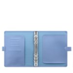 Diář klasického vzhledu se strukturovaným povrchem desek v krásné světle modré barvě. Desky jsou vyrobeny ze syntetického materiálu. Velikost náplně A5 - formát papíru 148 x 210 mm. Diář je standardně naplněn českým a slovenským kalendářem.