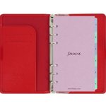Diář klasického vzhledu se strukturovaným povrchem desek v červené barvě. Desky jsou vyrobeny ze syntetického materiálu. Velikost diáře je Compact - užší desky než velikost Personal. Do diáře patří náplně velikosti Personal - formát papíru 95 x 171 mm. Diář je standardně naplněn českým a slovenským kalendářem.