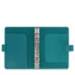 Diář klasického vzhledu se strukturovaným povrchem desek v příjemné tyrkysové barvě. Desky jsou vyrobeny ze syntetického materiálu. Velikost náplně Personal - formát papíru 95 x 171 mm. Diář je standardně naplněn českým a slovenským kalendářem.