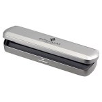 Kuličkové pero Diplomat z tvrzeného plastu v metalické lakové úpravě v barvě hliníku. Klip a doplňly jsou pochromované. Stiskací mechanismus pro vysunutí velkokapacitní náplně. Dodáváno v kovové dárkové krabičce.