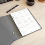 Plastové archivní desky na diářové náplně o velikosti A5 šedé barvy.