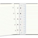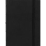 Kvalitní černý zápisník ve velikosti A6 s příjemným povrchem desek připomínající kůži od tradiční anglické značky Filofax. Tento poznámkový blok umožňuje vyjmout a zpět vrátit listy nebo třeba přehnout desky o 360°. Součástí balení je 56 linkovaných listů gramáže 100 g/m2, 4 čtverečkované a 4 čisté listy, 4 barevné rozdělovníky s kapsičkou a průhledné pravítko. Pružná gumička pro uzavření zápisníku. Velikost je 144 x 105 mm.