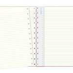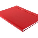 Kvalitní červený zápisník ve velikosti A4 s příjemným povrchem desek připomínající kůži od tradiční anglické značky Filofax. Tento poznámkový blok umožňuje vyjmout a zpět vrátit listy nebo třeba přehnout desky o 360°. Součástí balení je 56 linkovaných listů gramáže 100 g/m2, 4 čtverečkované a 4 čisté listy, 4 barevné rozdělovníky s kapsičkou a průhledné pravítko. Pružná gumička pro uzavření zápisníku. Velikost je 302 x 222 mm.