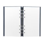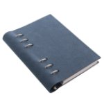 Kvalitní zápisník Clipbook ve velikosti osobní s příjemným povrchem desek v modré barvě a texturou semiše a kroužkovou vazbou od tradiční anglické značky Filofax. celý popis