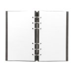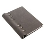Kvalitní zápisník Clipbook ve velikosti osobní s příjemným povrchem desek s barvou a texturou připomínající beton a kroužkovou vazbou od tradiční anglické značky Filofax. celý popis