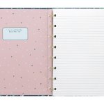 Zápisník Filofax ve velikosti A5 z kolekce Garden s pevnými laminovanými kartonovými deskami s motivem rozkvetlé zahrady a s detaily ze zlaté fólie a vzorovanou vnitřní stranou desek. Tento poznámkový blok umožňuje vyjmout a zpět vrátit listy nebo třeba přehnout desky o 360°. Součástí balení je 56 linkovaných listů gramáže 100 g/m2, který je vhodný i pro plnicí pera. Pružná gumička v modré barvě pro uzavření zápisníku. Velikost je 210 x 148 mm.
