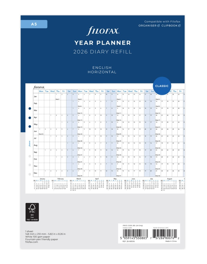 Filofax horizontální kalendář 2026 plánovací AJ - A5