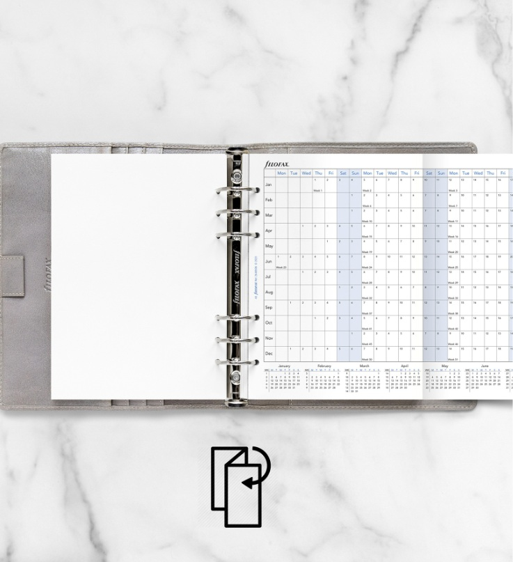 Plánovací kalendář 2025 horizontální rozkládací, anglický, pro diáře Filofax o velikosti A5. Formát papíru 148 x 210 mm.