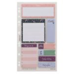 Sada přemístitelných lepicích poznámkových papírků z kolekce Garden zaručeně zpestří vaše poznámky. Obsahuje poznámkový bloček linkovaný, nelinkovaný a vertikální, bloček na seznam úkolů a čtyři bločky vodorovný záložek. Bločky jsou v barevné kombinaci růžové, modré, fialové a zelené. Sada je vhodná pro diáře Filofax A5 nebo Osobní, Clipbook A5 nebo Osobní nebo plnitelný zápisníku Filofax Notebook A5 a A4.