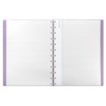 Kvalitní pastelově fialový zápisník ve velikosti A4 s příjemným povrchem desek od tradiční anglické značky Filofax. Tento poznámkový blok umožňuje vyjmout a zpět vrátit listy. Součástí balení je 56 linkovaných listů gramáže 100 g/m2, rozřazovače s kapsičkou a průhledné pravítko. Pružná gumička pro uzavření zápisníku. Velikost je 303 x 225 mm.