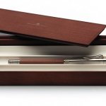 Perfect Pencil od Graf von Faber Castell je elegantní hnědá grafitová tužka s víčkem pokoveným platinou se zabudovaným ořezávátkem, které chrání grafitovou tuhu na jejím ořezaném konci. Ve víčku najdete i gumu. Platinou pokovené části jsou leštěny do zrcadlového lesku. Tužka je vyrobena z jemně žebrovaného cedrového dřeva z Kalifornie. Dodávané v luxusní dřevěné dárkové krabičce.