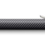 Luxusní kuličkové pero řady Guilloche od Graf von Faber Castell má tělo z kvalitní pryskyřice s vyrytým herringbone vzorem. Pero má elegantní vzhled a je perfektně zpracované. Kovové části jsou také pokryty vrstvou rhodia. Pero má spolehlivý pružinový klip. Otočný mechanismus pro vysunutí černé velkokapacitní náplně. Dodáváno v luxusní dárkové krabičce. Vyrobeno v Německu.