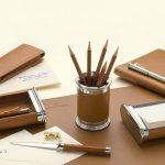 Jedinečná hnědá luxusní sada pro váš pracovní stůl. Kombinace nejkvalitnější italské telecí kůže a leštěných chromových doplňků. Sada obsahuje koženou podložku na stůl, box na poznámkové bločky, misku na pera, stojánek na tužky, nůž na dopisy a 6 tužek.
