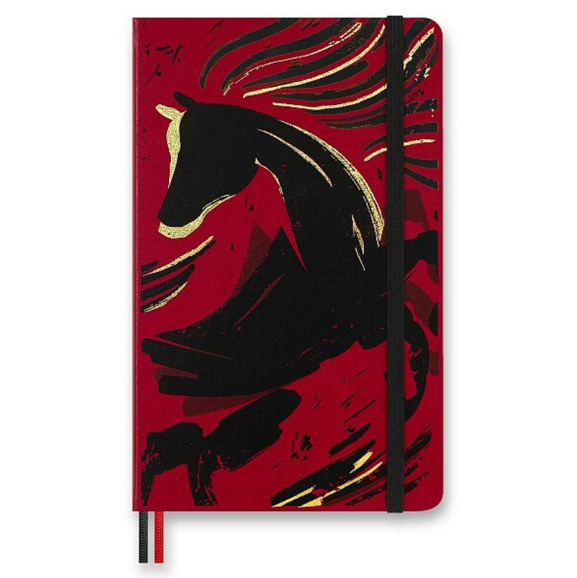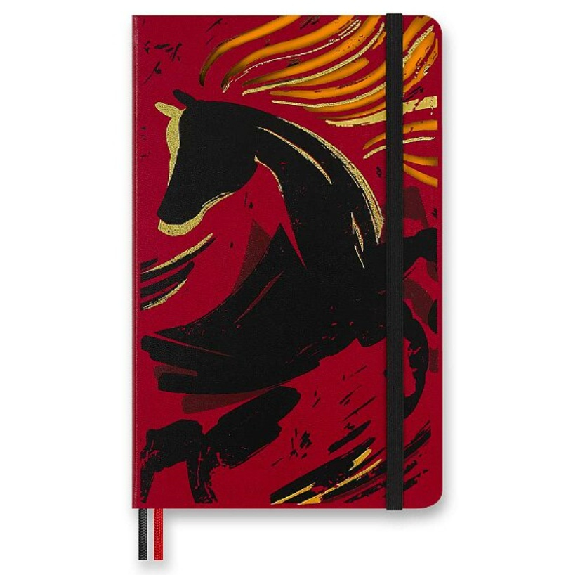 Moleskine Horse Wood sada zápisníku a 4 tužek - zápisník velikosti A5 a čtyři grafitové tužky Blackwing tvoří limitovanou edici inspirovanou rokem Ohnivého koně, která podporuje kreativní myšlení a zachycení nápadů kdykoliv během dne. Zápisník má pevnou šitou vazbu v tvrdých deskách z ikonického materiálu Epalon, který je známý svou odolností a příjemným povrchem. Reliéfní motiv koně zdůrazňuje pohyb a dynamiku. Speciální inkoust reagující na teplo dočasně mění barvu při teplotě nad 35 °C, čímž vytváří efekt inspirovaný živlem ohně. Slonovinový papír s gramáží 100 g/m² je vyroben z FSC certifikovaného dřeva, papír je příjemný pro psaní a dobře pracuje s inkoustem i grafitem, takže poznámky zůstávají přehledné a čisté. Rozměry zápisníku L - A5 (13 x 21 cm), obsahuje 88 linkovaných listů. Zápisník je v anglickém jazyce. Uvnitř najdete kapsu na vizitky a drobnosti z tkaniny a kartonu, dvojitou textilní záložku, 2 tematické obálky, arch samolepek a papírovou záložkou. Součástí sady jsou také čtyři grafitové tužky Blackwing s japonským grafitovým jádrem a gumou, které jsou známé svou hladkou stopou a přesným psaním. Celek je uložen v kartonovém dárkovém boxu a vznikl jako sběratelská edice značky Moleskine.