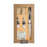 Dodáváno s hroty šířky 0,8 mm - 1,4 mm - 1,8 mm. Pero je vybavené systémem na bombičky i na plnění konvertorem, který není součástí balení. Dodáváno v dárkové krabičce s látkovým pouzdrem a bombičkami - 3x černá a 3x hnědá.