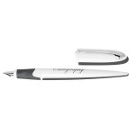 Lehké kaligrafické pero s plastovým tělem v kombinaci bílé a šedé barvy, zdobené kovovým klipem. Pero má vysoce kvalitní iridiové hroty. Díky trojhrannému tvaru je příjemné do ruky a je radost s ním pracovat. Vyrobeno v Německu.