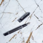 Kvalitní plnicí pero v černé barvě s tělem v designu uhlíkového vlákna. celý popis