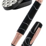 Originální dámské plnicí pero z černé syntetické pryskyřice a s doplňky v barvě růžového zlata. celý popis