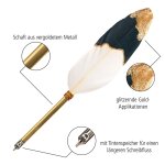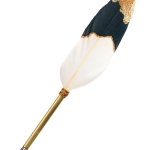 Kaligrafické pero je vyrobené z jemného husího pírka. Úchopová část je vyrobena z lakovaného lesklého plastu zlaté barvy, peříčko je zakončeno třpytivými zlatými aplikacemi. Elegantní namáčecí hrot v šířce 1,5 mm díky zásobníku rovnoměrně uvolňuje inkoust na papír. Dodáváno v dárkové krabičky. Výborný dárek pro všechny milovníky kaligrafie.