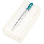 Elegantní kovové kuličkové pero Online Crystal má horní část v pastelově tyrkysové barvě zdobenou krystaly a liniemi. celý popis