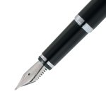 Elegantní plnicí pero má kovové štíhlé tělo v černé povrchové úpravě. celý popis