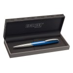 Kvalitní kuličkové pero z eloxovaného hliníku v moderním elegantním designu a modré barvě. Elegantní pružinový klip je pochromovaný a zdobený logem Online. Otočný mechanismus pro vysunutí velkokapacitní náplně. Dodáváno v elegantní dárkové krabičce.