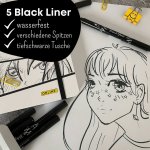 Sada Online vhodná pro všechny, kteří rádi projevují svou kreativitu. Ideální pro kreslení, vybarvování a stínování komiksů a manga postav. Sada obsahuje 3 černé linery (0.3, 0.5 a 0.7 mm), kaligrafický fix s hrotem šířky 2 mm, brush pen se štětcovým hrotem a tečkovaný zápisník. Inkoust ve fixech je voděodolný, světlostálý a nesmazatelný. Zápisník je ve velikosti A5 a má 72 tečkovaných listů gramáže 120 g/m2.