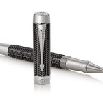 Keramické pero Parker Duofold Prestige Black Chevron má černou metalickou barvu, tělo i víčko je zdobené dekorativní strukturou vytvořenou leptáním. Doplňky jsou pokovené rutheniem. Víčko je šroubovací. Dodáváno s černou náplní. Každé pero má své individuální sériové číslo. Dodáváno v elegantní dárkové krabičce.