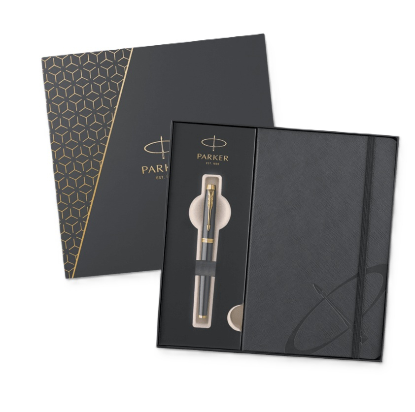 Dárková sada plnicího pera Parker I.M. Core Grey GT, zápisníku a voucheru na kurz Akademie psaní. celý popis
