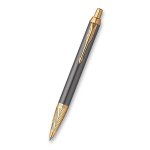 Kuličkové pero Parker Royal I.M. Premium Arrow GT má kovové tělo pokryté lesklým šedým lakem. Úchopová část má zdobnou rytinu se vzorem "šípu" vytvořeným leptáním a je pokovená 23karátovým zlatem. Doplňky jsou pozlacené pomocí techniky PVD. Stiskací mechanismus pro vysunutí velkokapacitní náplně (součástí jedna náplň). Dodáváno s černým pouzdrem a voucherem na kurz Akademie psaní v elegantní dárkové krabičce.