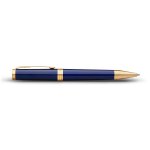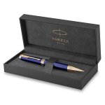 Kuličkové pero Parker z řady Ingenuity má mosazné tělo s leskle tmavě modrou lakovou povrchovou úpravou. Doplňky jsou pokovené zlatem technikou PVD. Otočný mechanismus pro vysunutí velkokapacitní náplně. Součástí balení jedna náplň. Dodáváno v dárkové krabičce.
