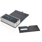 Tělo i víčko v modré barvě z leštěného eloxovaného hliníku. Pero má zdobné prvky na úchopové části vytvořené leptáním. Doplňky jsou pokovené chromem. Kovový hrot plní ochrannou funkci pro flexibilní hrot náplně. Víčko je nasazovací. Součástí je černá náplň. Dodáváno v luxusní dárkové krabičce.
