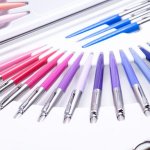 Pera mají tělo vyrobené z barevného tvrzeného plastu a vrchní část a doplňky jsou z nerezové oceli. Kuličková pera mají stiskací mechanismus pro vysunutí velkokapacitní náplně. Dodáváno v elegantním kufříku.