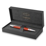 Kuličkové pero Parker Duofold Big Red Vintage CT je vyrobené z houževnaté, červené pryskyřice s dekorativním textem vyrytým pomocí laseru. Doplňky jsou pokovené palladiem. Otočný mechanismus pro vysunutí velkokapacitní náplně. Dodáváno s černou náplní. Včetně individuálního sériového čísla. Dodáváno v elegantní dárkové krabičce.