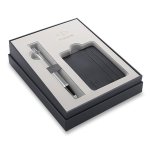 Sada kuličkového pera Parker I.M. Essential Stainless Steel CT a pouzdra na karty v dárkové kazetě. celý popis