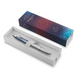 Kuličkové pero Parker Royal I.M. Last Frontier Polar má tělo z nerezové oceli s jedinečným barevným stínováním od břidlicové až po ledově modrou. Zdobné prvky jsou inspirované ledovcovou krajinou Arktidy a vytvořené laserem. Doplňky jsou mosazné a pochromované. Stiskací mechanismus pro vysunutí velkokapacitní náplně. Součástí balení jedna náplň. Dodáváno v elegantní dárkové krabičce s moderním vzhledem.