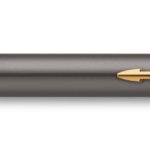 Kuličkové pero Parker I.M. Arrow GT má leskle šedě lakované tělo se zdobnou rytinou na úchopové části a s pozlacenými doplňky. celý popis