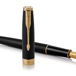 Plnicí pero Parker Royal Sonnet Matte Black GT má matně černě lakované tělo a víčko. Doplňky jsou pokovené zlatem. celý popis