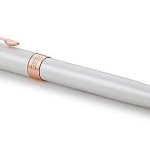 Kuličkové pero Parker Royal Pearl PGT má perleťově lakované tělo a víčko. Doplňky jsou pokovené růžovým zlatem. Otočný mechanismus pro vysunutí velkokapacitní náplně. Dodáváno v elegantní dárkové krabičce.